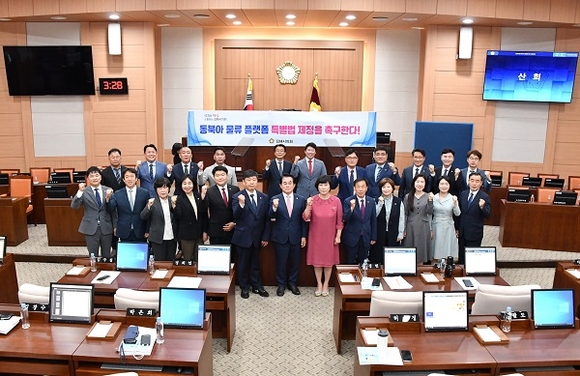 시의회 도시건설위원회가 대표 발의하고 25명 의원 전원이 찬성한 이번 결의안에는 항만·항공·철도 교통이 유기적으로 연결된 물류 네트워크 거점기지 구축과 '동북아 물류 플랫폼' 조성사업의 조속한 진행을 위한 특별법 제정을 촉구하는 내용을 담고 있다.