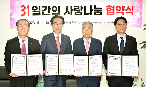 BNK경남은행은 1일 경남신문·대한적십자사 경남혈액원과 '31일간의 사랑 나눔 협약'을 체결했다.