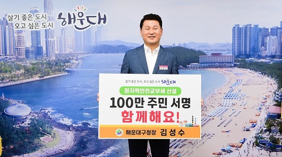 김성수 해운대구청장이 전국 원전동맹 23개 지자체가 원자력안전교부세 신설 촉구를 위해 추진하는 ‘100만 주민 서명운동 홍보 챌린지’에 참여했다.