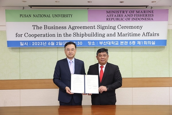부산대학교는 차정인 총장과 빅토르 구스타프 마노포 인도네시아 해양수산부 해양공간관리청장이 지난 2일 오후 '조선해양분야 협력을 위한 업무 협약'을 체결하고 한-인니 양국의 조선해양분야 협력 방안에 함께 뜻을 모아 추진해 나가기로 했다고 밝혔다.