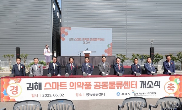 지난 2일 김해시 진례면 고모리 1580-4번지에서 '김해 스마트 의약품 공동물류센터' 개소식이 열렸다. 이날 행사에는 홍태용 시장과, 김정호 국회의원, 류명열 시의장, 최학범 경남도의회 부의장, 도의원, 시의원, 국토교통부, 도 관계자 등 100여 명이 참석했다.