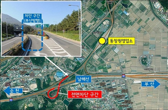 한국도로공사 부산경남본부는 오는 8일 20시~9일 6시까지 10시간 동안 연결로 절삭재포장공사를 위해 남해선 동창원IC 부산방향 진입연결로를 전면차단 한다고 5일 밝혔다. 공사 관계자는 “교통통제가 시행되는 날은 해당 구간 이용이 불가하오니 이 구간을 이용하는 운전자는 다소 불편하더라도 인근IC를 이용해주시고, 안전관리자 등 통제요원의 지시에 따르면서 적극 협조해주실 것”을 당부했다.