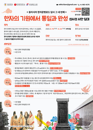 경성대학교 한국한자연구소 HK+사업단은 오는 8월 19일부터 24일까지 4박 6일간 중국 섬서성 서안 지역에서 '동아시아 한자문명로드 답사 그 네 번째: 한자의 기원에서 통일과 완성' 프로젝트를 진행한다.