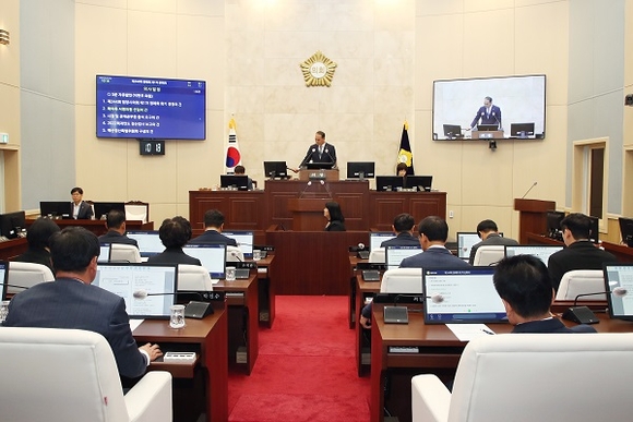 정정규 의장은 개회사에서 “행정사무감사는 주민의 알권리를 실현하고 행정의 민주적 정당성 확보를 위한 과정이므로 필요한 경우 현장 감사를 병행하여 단순 지적을 위한 감사가 아닌 시민의 입장에서 바라보고 우리가 나아가야할 방향을 제시해주기를 바란다”고 당부했다.