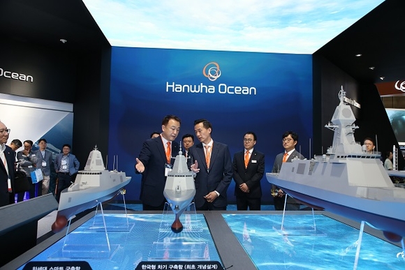특히, 한화오션 부스에서는 가장 오랜 시간을 머무르며 한화오션의 최신 기술이 총 망라된 함정에 대한 설명을 들었다.