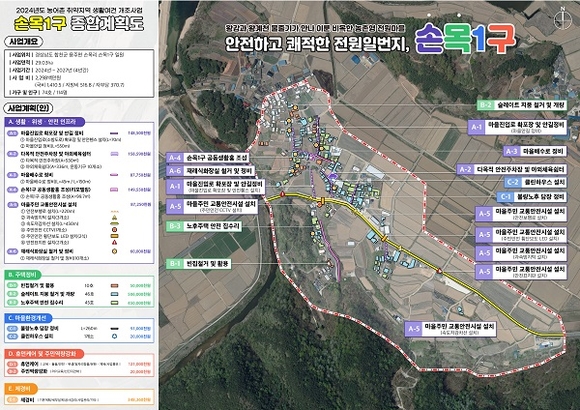 군은 내년부터 2027년까지 4년간 대양면 도리마을은 재해피해 방지 하천 다이크 설치, 옹벽·배수로 개선 등을 위해 20여 억 원을 투입해 '산사태와 홍수의 피해로부터 안전한 배산임수' 마을로, 용주면 손목1구에는 농기계 및 차량으로 부터 안전한 보행환경 조성을 위해 마을진입로 확포장, 농기계 안전주차장 등 19여 억 원을 투자해 '안전하고 쾌적한 전원일번지' 마을로 조성한다는 계획이다.