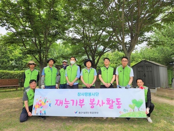 참사랑봉사단은 울산시설공단 종합운동장 직원들로 구성된 직원 봉사단으로, 조경 전문가 3명을 포함한 직원 12명이 울산 참사랑의 집을 찾아 직원들의 전문 기술을 적극 활용해 조경수 전지작업 및 비료 주기, 주변 환경 정비활동을 실시했다.