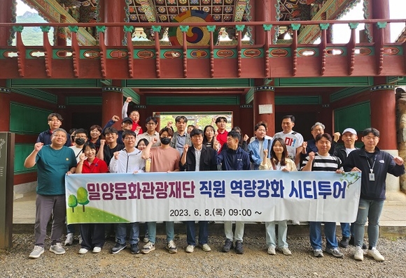 밀양문화관광재단은 8일 전 직원을 대상으로 지역에 흩어져 있는 역사문화자원 현장을 둘러보는 시티투어를 실시했다.