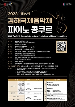 전국 각지의 재능있는 청소년과 연주자들이 참여하는 이번 콩쿠르에는 김해시장상, 인제대총장상, 국회의원상, 김해시의회 의장상 등 총 150만 원의 상금이 수여된다. 피아노 협주, 실내악, 실용 피아노 부문을 신설해 다양한 장르에서 후속 피아니스트를 양성하는 중추적 역할을 할 예정이다.