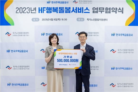 한국주택금융공사(HF)가 지난 8일 독거노인종합지원 센터와 ‘HF 행복돌봄서비스‘ 사회공헌 협약을 체결했다고 밝혔다.