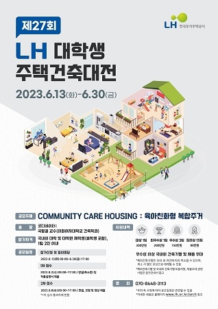 LH는 새로운 주거유형에 대한 대학생들의 창의적인 아이디어를 도출하고 청년층 역량강화 및 경력개발을 지원하기 위해 '제27회 LH 대학생 주택건축대전'을 실시한다고 밝혔다.