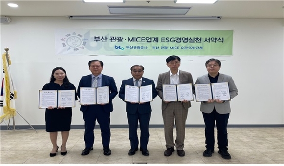이어 부산관광마이스진흥회, 부산관광미래네트워크, 한국관광레저학회, 코리아스타트업포럼 동남권협의회와 부산관광 ‧ MICE 업계 ESG 경영 실천 2차 릴레이 협약식을 체결했다.