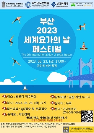 부산외국어대학교 주한인디아센터에서는 UN이 정한 'UN 세계 요가의 날' 부산 행사를 23일 오후 5시 부산 광안리해수욕장에서 개최한다고 밝혔다.