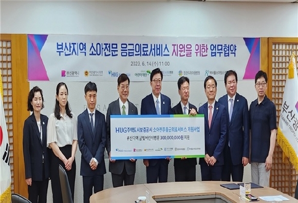 부산시의회가 14일 아동의 응급의료서비스 접근성과 건강권 보장을 위한 ‘부산지역 소아전문 응급의료서비스 지원 사업’을 추진하고자 부산시와 주택도시보증공사(HUG), 어린이재단, 달빛어린이병원과 다자간 업무협약을 체결했다고 밝혔다.
