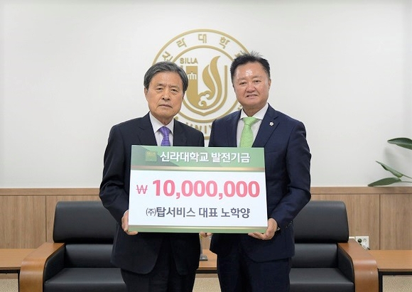 신라대학교는 주식회사 탑서비스가 1000만 원을 대학발전기금으로 기탁했다고 15일 밝혔다.