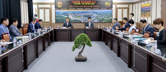 경남 합천군은 지난 14일 군청 소회의실에서 지방소멸 대응기금의 일환으로 추진 중인 산림체류형 청년창업센터 조성 용역 보고회를 가졌다.