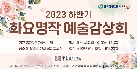 창원문화재단은 2023년 하반기 화요명작예술감상회 수강생을 지난 12일부터 모집한다고 밝혔다.