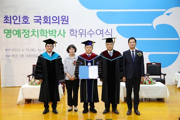 부산대학교는 15일 오후 대학본부 3층 대회의실에서 더불어민주당 최인호 국회의원에게 '명예정치학박사' 학위를 수여했다고 밝혔다.