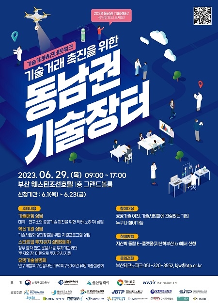 부산테크노파크(TP)가 산업통상자원부와 한국산업기술진흥원에서 지원하는 기술거래촉진네트워크사업의 부산지원컨소시엄 주관기관으로 지역 산·학·연 협력기반 조성 및 공동연구 활성화를 위한 교류의 장을 마련하기 위해 오는 29일 부산웨스틴조선호텔에서 ‘2023년 동남권 기술장터’를 개최한다고 밝혔다.