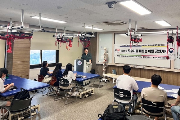 영산대학교 대학일자리플러스센터가 취업동아리 국시뿌셔 학생들을 위한 물리치료사 국가고시 대비 특강을 진행하고 있다. (사진=영산대 제공)