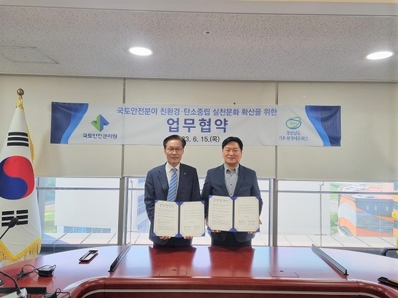 국토안전관리원(이하 관리원)은 지난 15일 진주 본사 대회의실에서 경남도 기후·환경네트워크와 '국토안전 분야 탄소중립 실천문화 확산'을 위한 업무협약을 체결했다고 밝혔다.