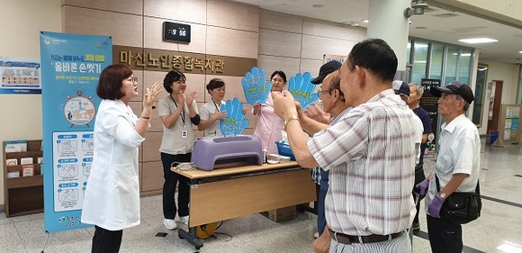 창원시설공단이 어르신 위생 및 폭염대비 교육을 하고 있는 모습. (사진=창원시설공단 제공)