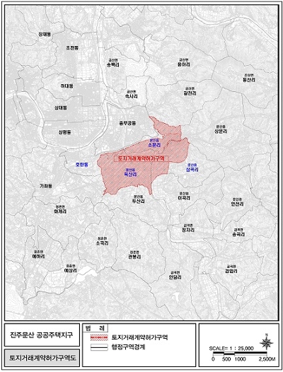 경남 진주시는 '진주문산 공공주택지구' 및 인근 지역에 대해 오는 21일부터 2026년 6월 20일까지 3년간 토지거래허가구역으로 지정 공고한다고 밝혔다.