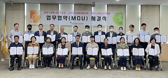 김해의생명산업진흥원은 지난 20일 김해시요양병원협의체, 관내 21개 요양병원과 업무협약을 체결했다.