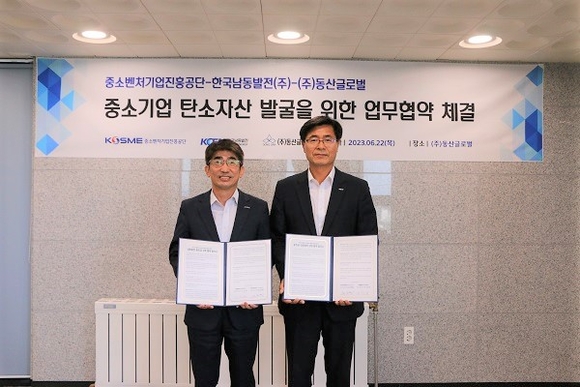 중소벤처기업진흥공단(이하 중진공)과 한국남동발전(이하 남동발전)은 중소기업 탄소중립과 온실가스 감축 공동 대응 협업체계 구축을 위해 22일 오후 동산글로벌을 방문해 업무협약을 체결했다고 밝혔다.