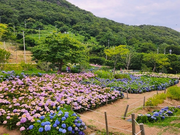 부산 강서구 가덕도 외양포 야생화단지에 여름꽃의 여왕 수국이 만개해 절정이다. 외양포 야생화단지는 강서구가 지난 2020년 대항동 산13-23번지 일원 8000제곱미터에 관광객에게 볼거리, 쉼터를 제공하고자 조성한 곳으로 수국 외에도 이팝나무, 산딸나무, 애기동백 등 다양한 수목을 만나볼 수 있다.(사진=부산 강서구 제공)