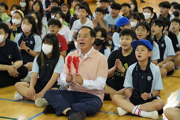 이날 하윤수 교육감을 비롯해 안선옥 북부청교육장, 동궁초등학교 5학년 학생 110명, 학교운영위원 및 학부모 위원등이 함께 했다.