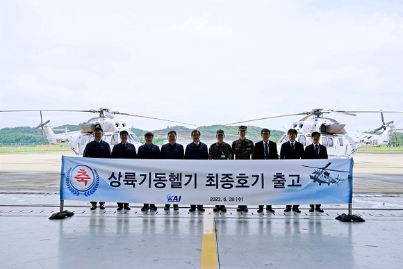 한국항공우주산업(KAI)이 28일 경남 사천 본사에서 상륙기동헬기 마린온 최종호기 출고행사를 개최했다고 밝혔다.