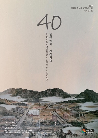 경남도가 창원 도정시대 40주년을 맞아 오는 7월 3일부터 15일까지 도청 본관1층에서 도의 탄생 및 발전을 중심으로 '창원 도정시대 40주년 기념 기록전시회-빈터에서 시작하다'를 연다.
