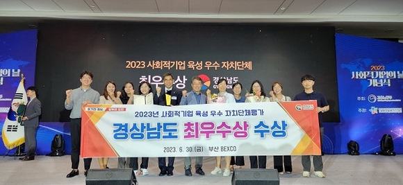 경남도가 고용노동부가 주관하는 '2023년 사회적기업 육성 우수 자치단체 평가'에서 최우수상을 수상했다.
