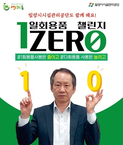 최영태 밀양시시설관리공단 이사장이 환경부가 추진하는 일회용품 사용 줄이기 실천 운동을 위해 30일 일회용품 제로 릴레이 챌린지 캠페인에 동참했다.