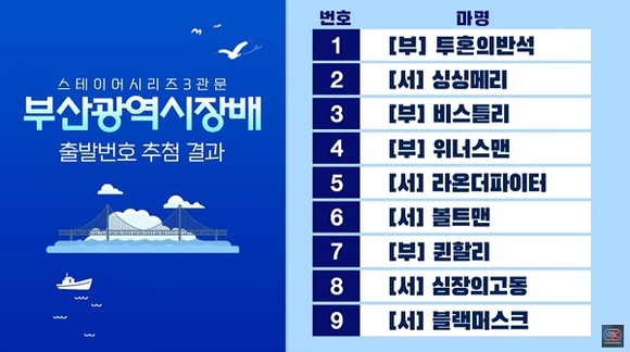 '부산시장배'는 중장거리 최우수마를 선발하는 스테이어 시리즈의 마지막 경주로 1관문 '헤럴드경제배', 2관문 'YTN배'를 거쳐왔다. 시리즈의 누적 승점이 가장 높은 말은 시리즈 최우수마로 선발되며, 1억 원의 인센티브를 획득한다. '위너스맨'은 1관문을 우승하고 '투혼의반석'은 2관문을 우승해 현재 동일한 누적 승점을 획득했다. 그래서 이번 경주는 '위너스맨'과 '투혼의반석' 그리고 서울 대표의 자존심을 걸고 싸우는 '라온더파이터'에게도 결코 내어줄 수 없는 승부가 됐다.