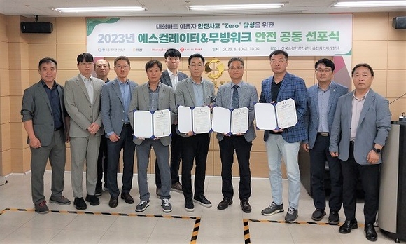 한국승강기안전공단(KoELSA)가 이마트‧홈플러스‧롯데마트 등 대형마트 3사와 에스컬레이터와 무빙워크 이용자 사고 제로 달성을 위한 공동선포식을 개최했다고 3일 밝혔다.