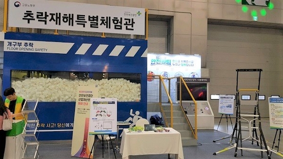이에, 공단 산업안전보건연구원(이하 연구원)에서는 산업안전연구를 통해 개발된 안전신기술 3종 ▲K-사다리 ▲스마트 추락방지대 ▲지락차단장치를 추락재해 특별 홍보관 내에서 전시했다.