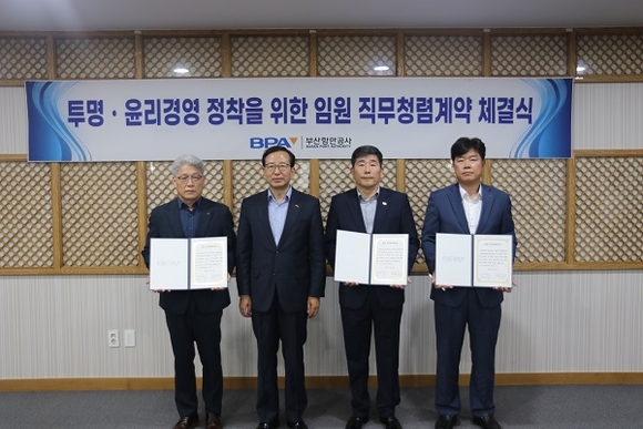 부산항만공사(BPA)가 지난 3일 청탁금지법 및 이해충돌방지법 준수 등을 위한 사장–임원 간 직무청렴계약을 체결했다고 밝혔다.