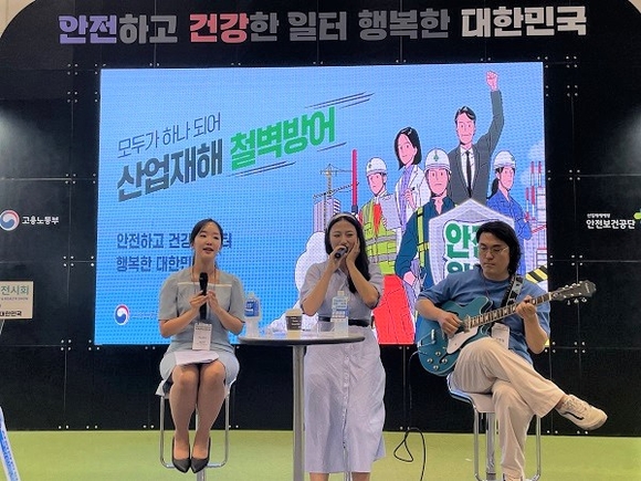 안전보건공단(이하 공단)은 '2023 산업안전보건의 달'을 맞아 킨텍스 제2전시장 국제안전보건전시회장 커뮤니케이션 존에서 동아오츠카와 함께 온열질환 예방 콘서트를 개최했다.