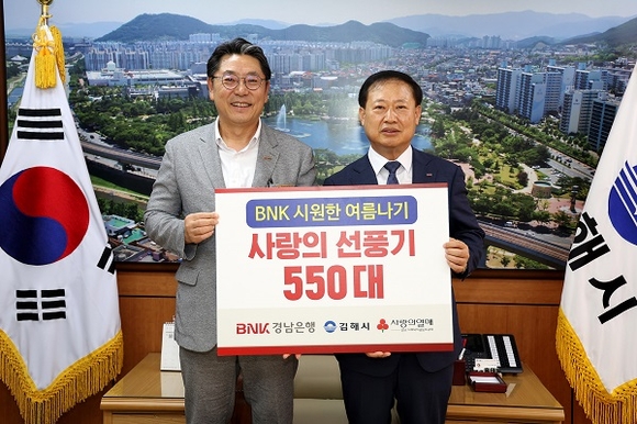BNK경남은행은 4일 저소득 취약계층의 시원한 여름나기를 위해 선풍기 550대(1650만원 상당)를 김해시에 기탁했다.