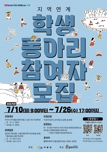 ‘2023년 지역연계 학생동아리’는 또래 친구들과 함께 연극과 뮤지컬을 만들어 보면서 예술적 감성과 소양을 함양할 수 있는 프로그램이다. 오는 29일부터 11월 18일까지 매주 토요일 총 15회로 진행된다.