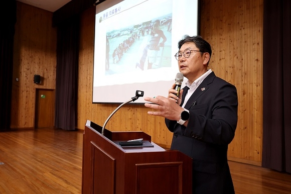 홍태용 김해시장은 5일 김해고등학교 체육관에서 '홍태용, 다시 낯선 길에서'라는 주제로 전체 학년을 대상으로 특강했다.