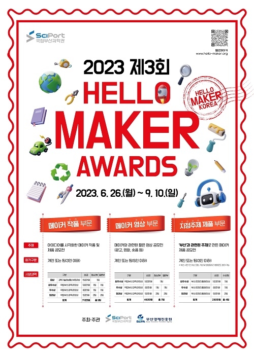 국립부산과학관이 ‘2023 제3회 헬로메이커 공모전(HELLO MAKER AWARDS)’을 개최한다고 6일 밝혔다.