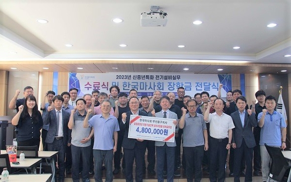 한국마사회 부산동구지사는 지난 5일 한국폴리텍대학 부산캠퍼스 세미나실에서 열린 실업중장년 전문기술인력양성과정 전기설비 실무자 수료식에서 일자리창출 훈련 장려금 480만 원을 전달했다고 밝혔다.