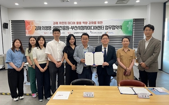 김해의생명산업진흥원은 지난 5일 김해창업카페 세미나홀에서 부산시청자미디어센터와 김해 시민의 미디어 활용 역량 강화를 위한 업무협약을 체결했다.