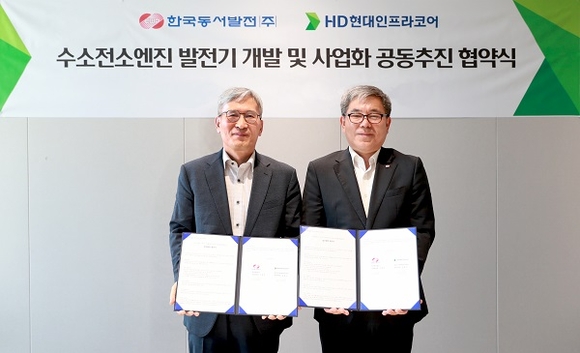 한국동서발전은 HD현대인프라코어와 '수소엔진발전 시장 및 산업활성화, 국산화 기술개발'을 위한 업무협약을 지난 6일 오후 4시 경기도 성남시 분당구 HD현대 글로벌R&D센터에서 체결했다고 7일 밝혔다.