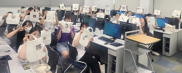 또 박수진 교수의 진행으로 멀티미디어학부 디자인 스튜디오를 방문해 학생들이 직접 포토샵으로 디자인한 이미지를 에코백에 직접 전사 출력해 소장하는 기회도 가졌다.