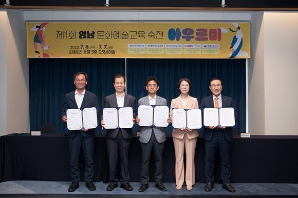 이날 5개 기관 협약식과 더불어 진행된 영남 문화예술교육 축전 ‘아우르미’ 워크숍은 부산, 경남, 울산, 대구, 경북 등 5개 영남권 광역문화예술교육센터 및 지역 문화예술교육 단체 150여 명이 참여해 성공리에 마쳤다.