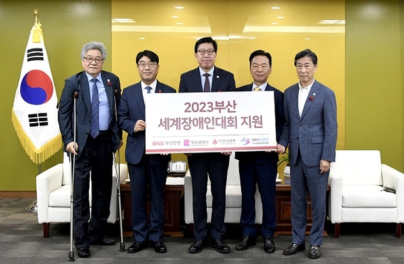 BNK부산은행이 11일 오전 부산시청에서 ‘2023부산세계장애인대회 조직위원회’에 후원금 1억원을 전달했다고 밝혔다.